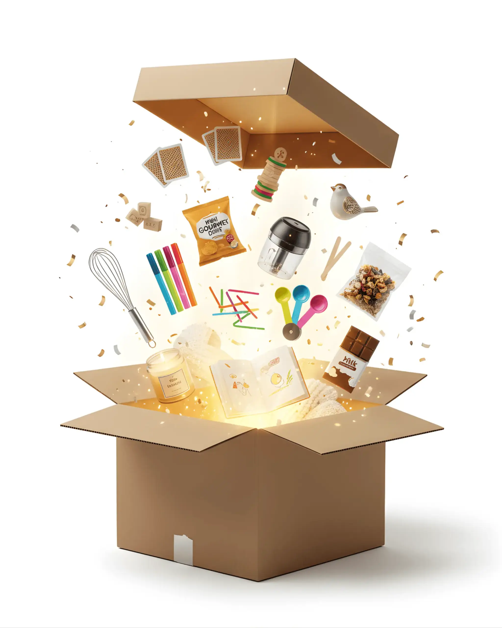Includes: Games, kitchen gadgets, family activities, snacks, and home accessories.